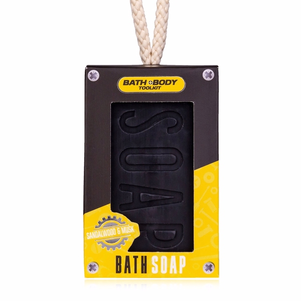 • detail Accentra Bath & Body Toolkit, černé mýdlo 200g na šňůrce