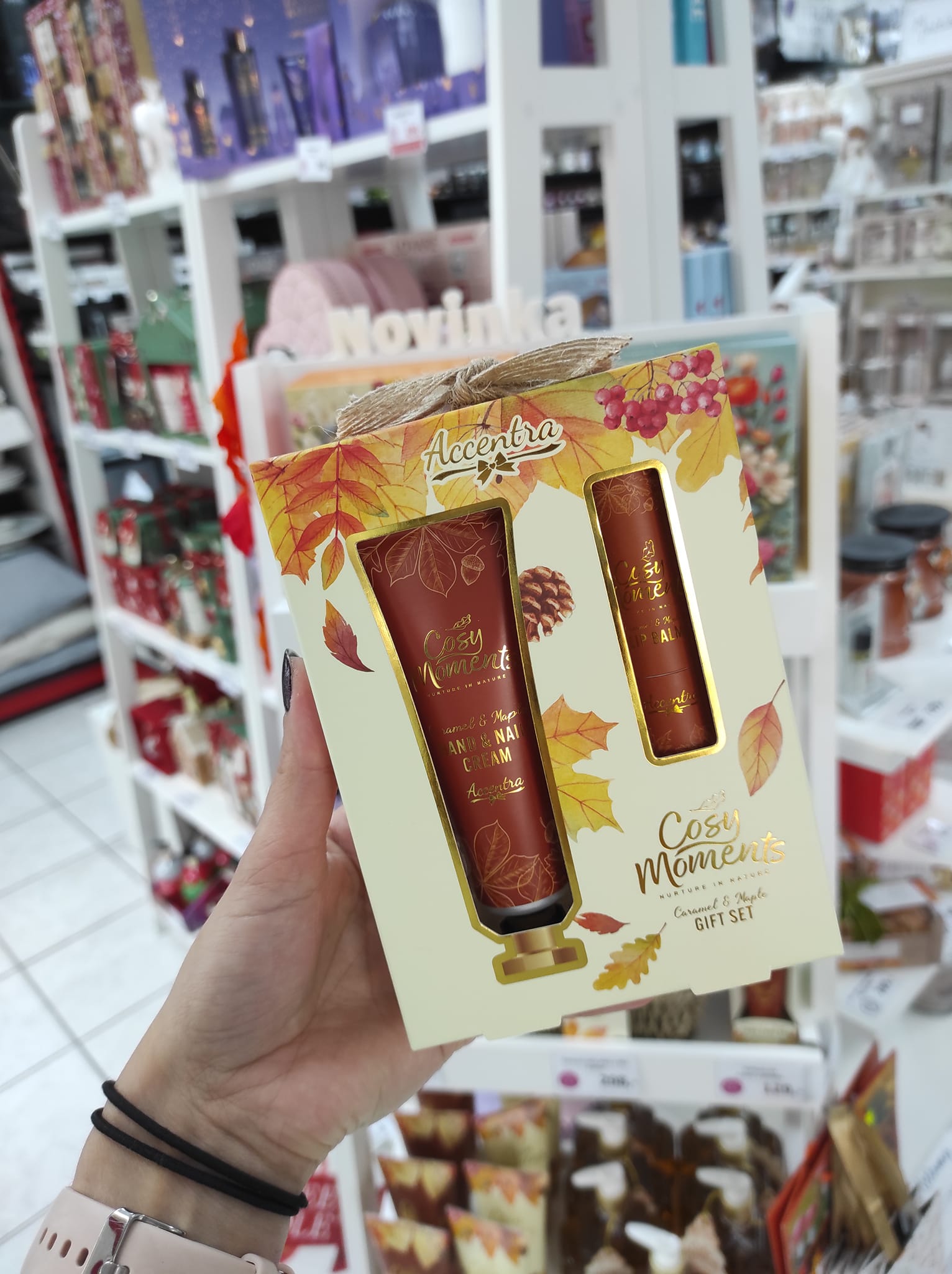 • detail Accentra COSY MOMENTS, dárková sada krému na ruce a balzám na rty