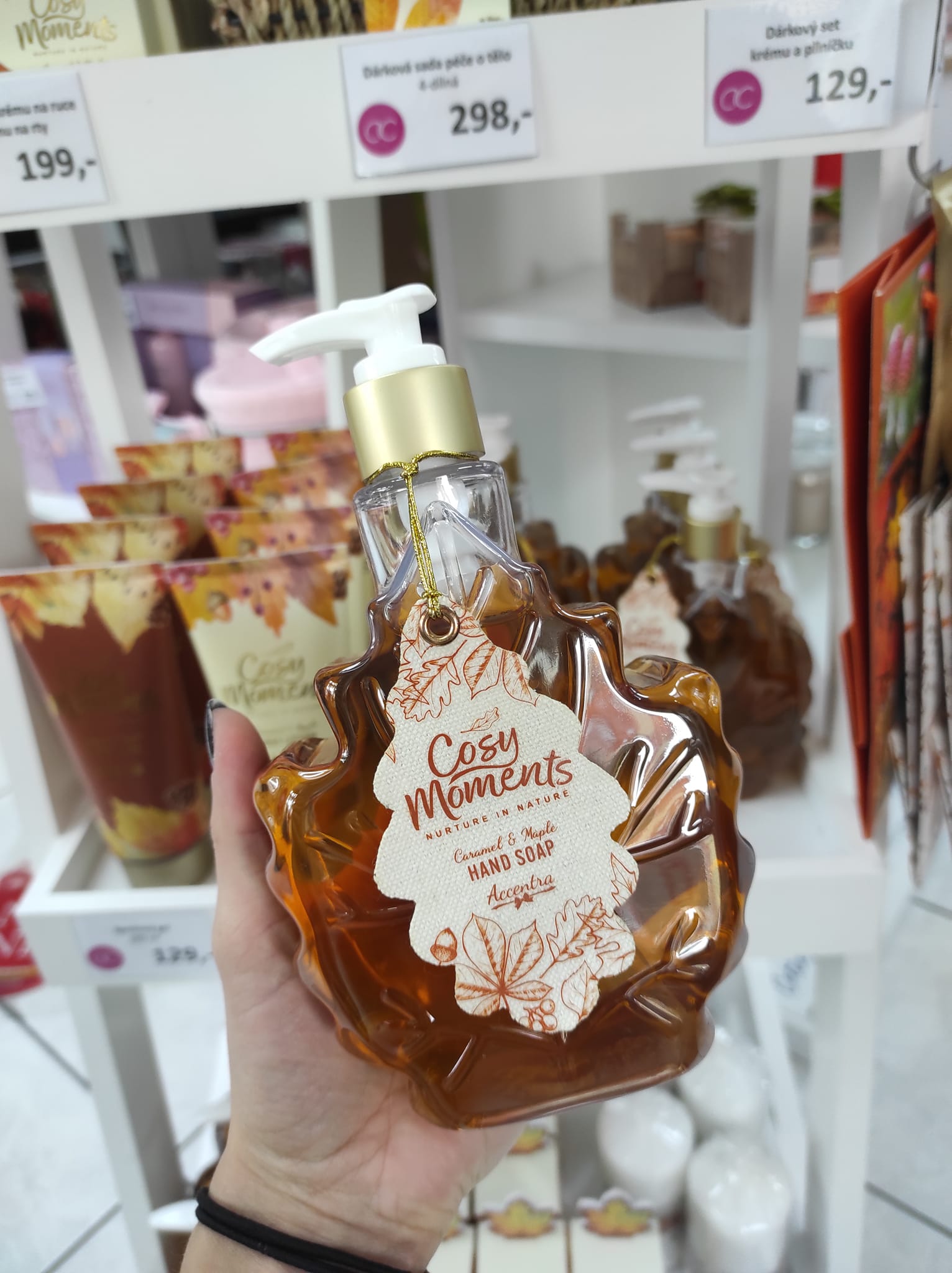 Pečující podzimní mýdlo na ruce s vůní sladkého karamelu a javoru od německé firmy Accentra.