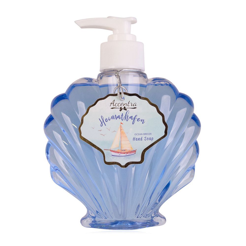 Nádherné tekuté mýdlo na ruce s vůní mořského vánku v nádobě ve tvaru mušle s pumpičkou od německé firmy Accentra.