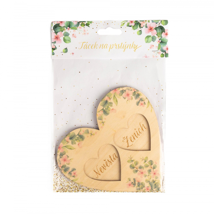 Romantický a něžný tácek na snubní prstýnky pro nevěstu a ženicha je svatební dekorací, která novomanželům zůstane i jako krásná vzpomínka na jejich výjimečný den.