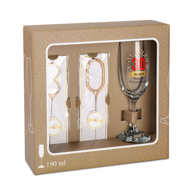 Narozeninová sada se sklenkou na sekt 190 ml a 2 prskavky.