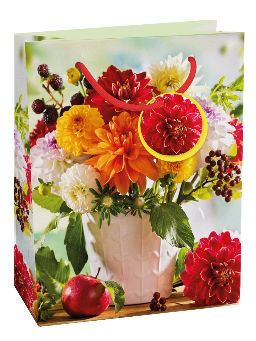 Dámská pevná dárková taška s krásnou letní kyticí, velikosti L.