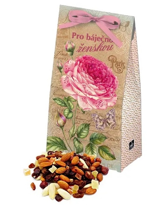 Krásný a chutný dárek pro ty, které máte rádi. Velmi vhodný i jako poděkování pro kolegy v práci, zaměstnance... Balíček obdarovaného okouzlí nejen výbornou chutí, ale také krásným a originálním zevnějškem. Na krabičce se nachází i mašlička s kartičkou, kde můžete vepsat také své vlastní věnování.