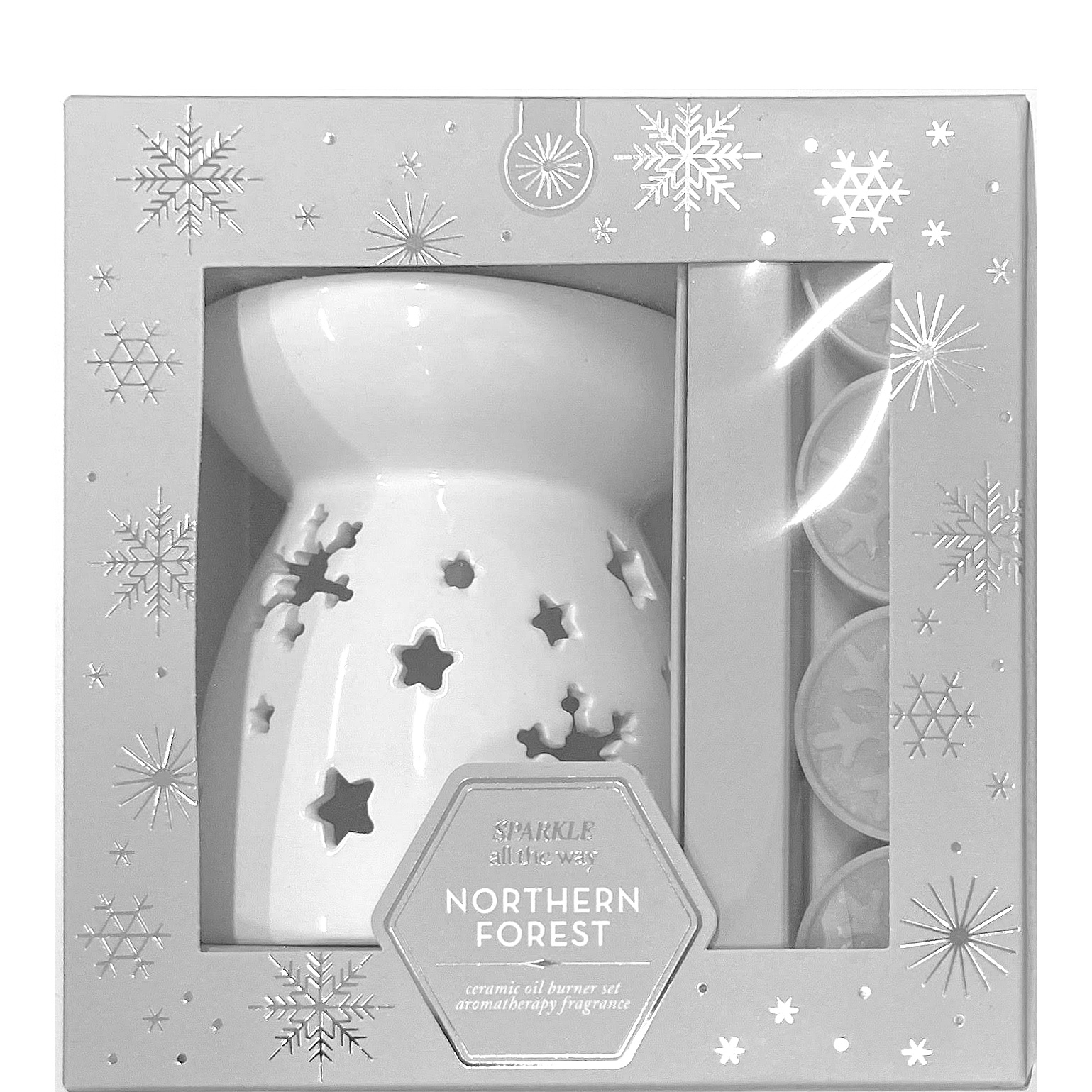 Dárková sada aromalampy a 4 vosků s vůní Northerm Forest.