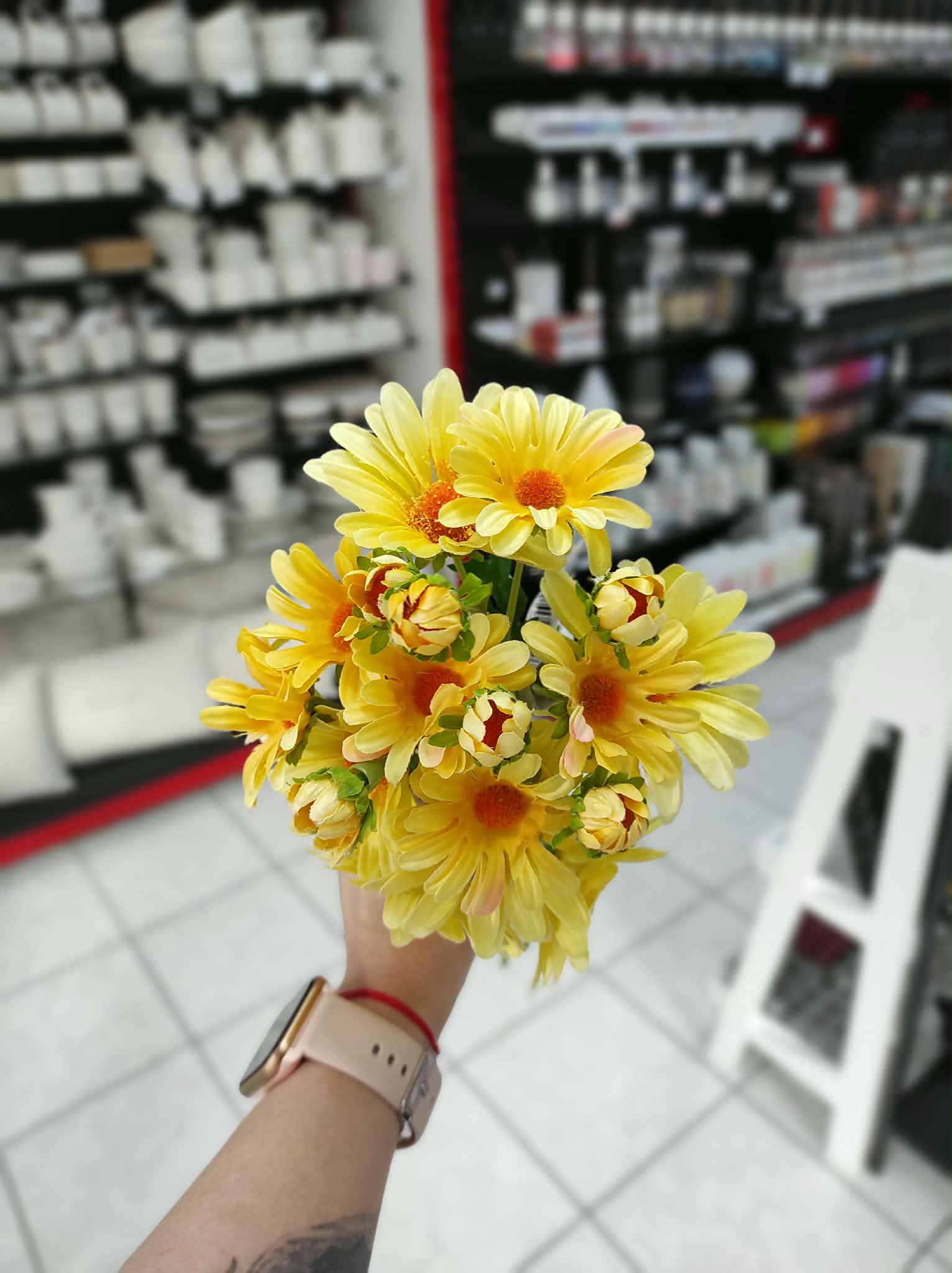 Svazek žlutých kopretin o délce 36 cm z měkkého platu a látky.