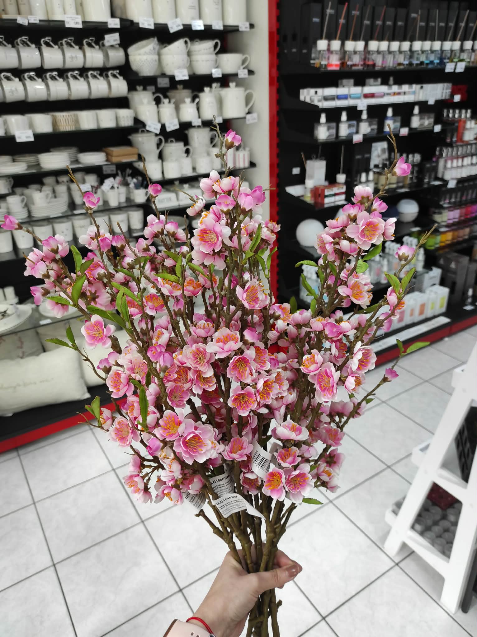 Velká umělá kvetoucí větev růžové třešně - Sakury o délce 85 cm.