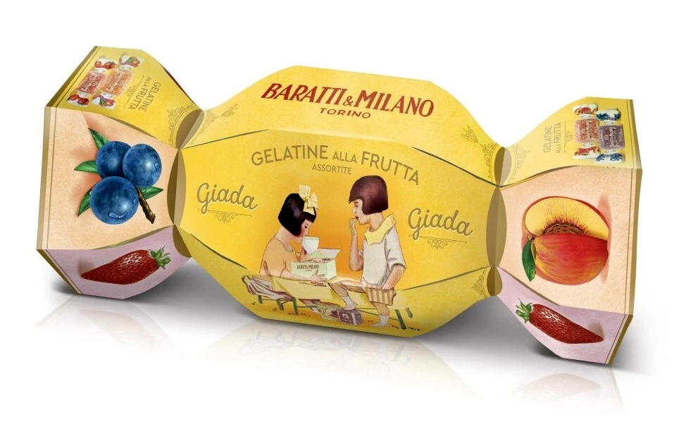 Italské ovocné želé v dárkové krabičce ve tvaru bonbónu.
