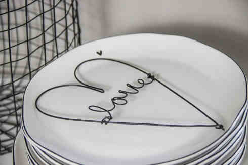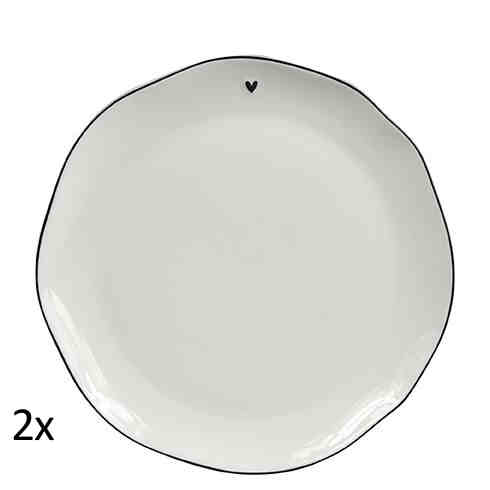 Úžasné snídaňové talíře (23cm v průměru) s ručně malovanou černou linkou a malým černým srdíčkem od holandské firmy Bastion Collections.