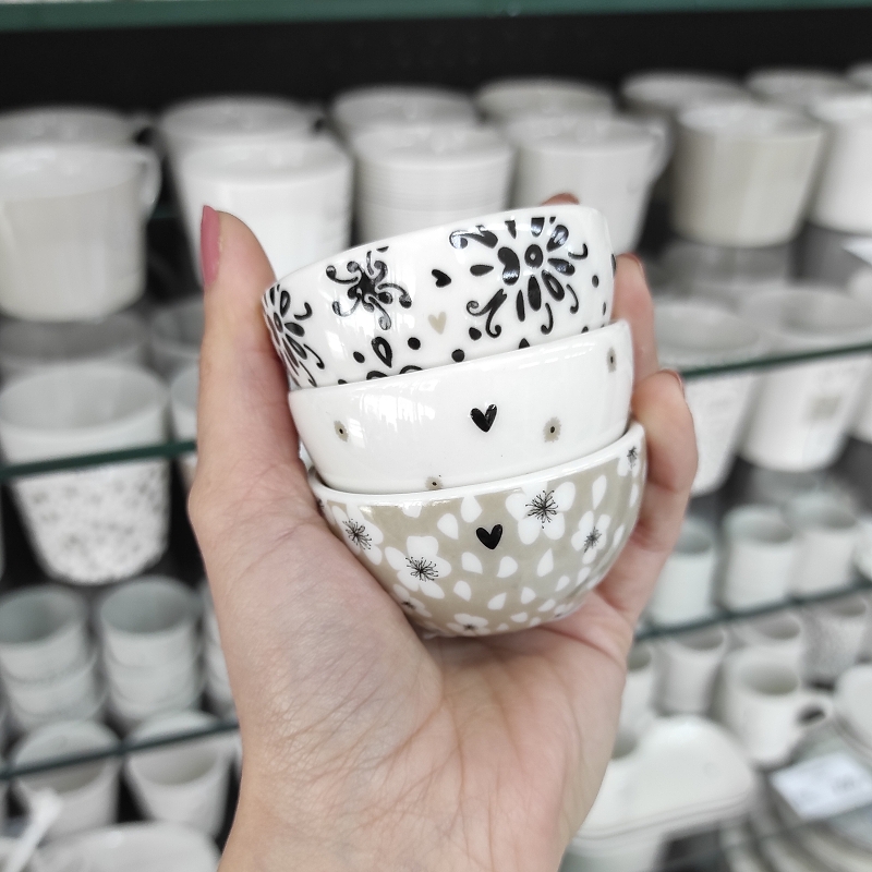 Ručně malovaná mini miska s malými tečkami v černé barvě