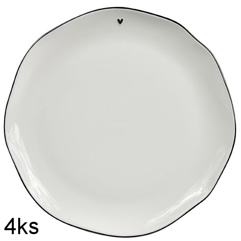 Sada 4 ks stejných velkých talířů s černým srdíčkem a ručně malovanou černou linkou.