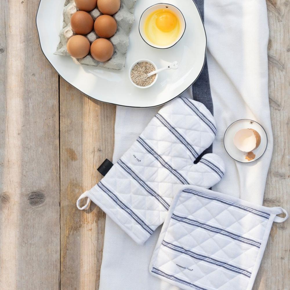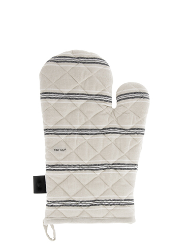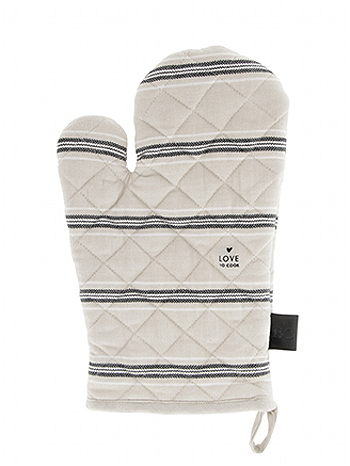 Kuchyňská chňapka (rukavice) v přírodním provedení s pruhy od holandské firmy Bastion Collections.