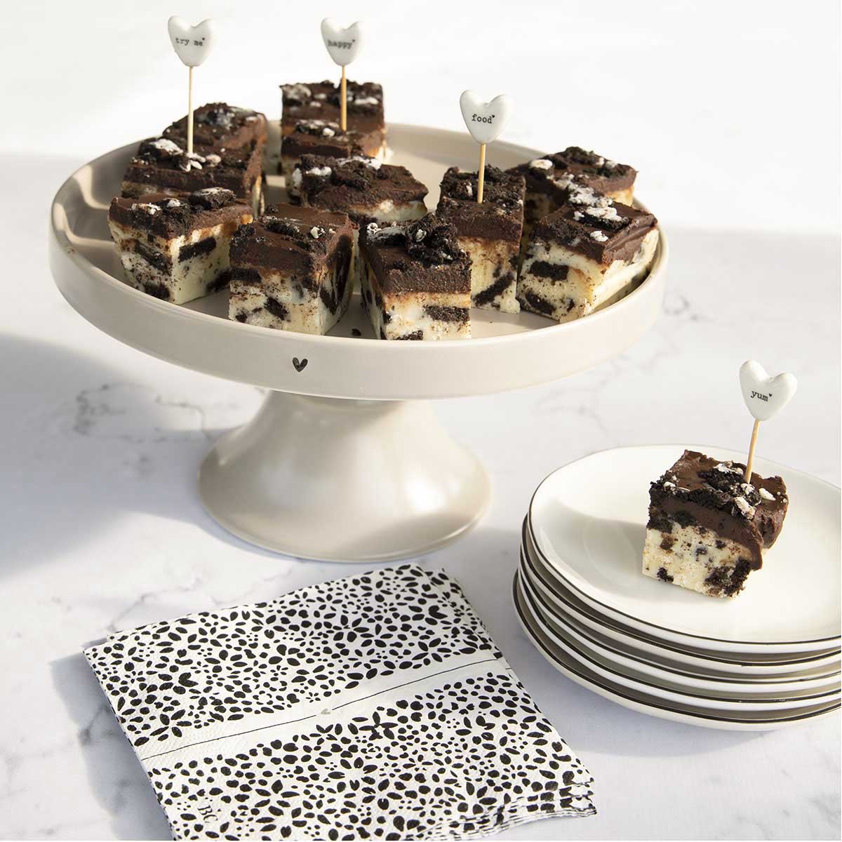 Nádhrený doratový talíř s okrajem v matném, titanovém provedení s malým černým srdíčkem od holandské firmy Bastion Collections.