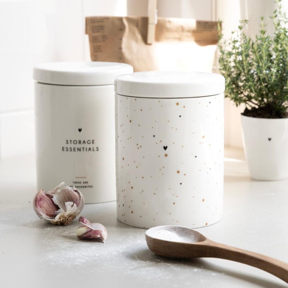 Úložná nádoba "malé tečky a srdíčka" v barevné kombinaci hnědá/černá je skvělým doplňkem do každé kuchyně.