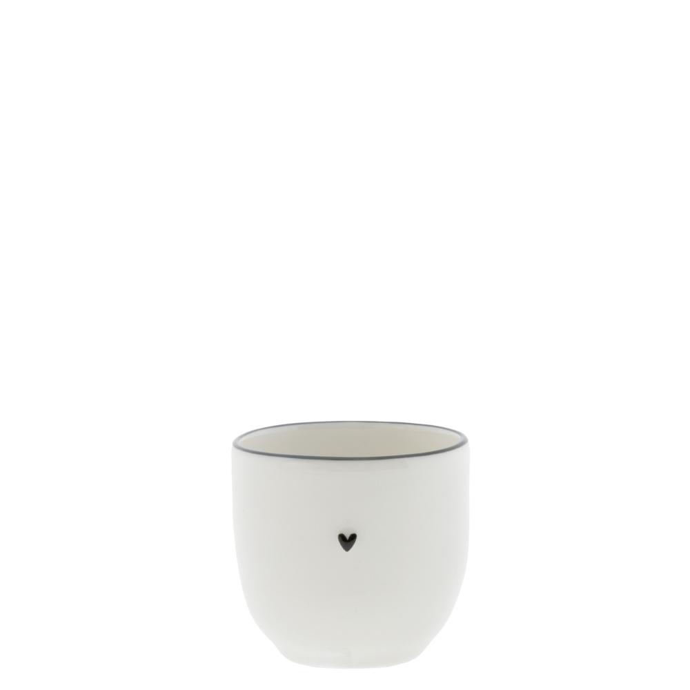 Ručně malovaný kalíšek na vejce bez podstavce s malým černým srdíčkem od holandské firmy Bastion Collections.