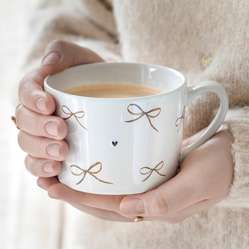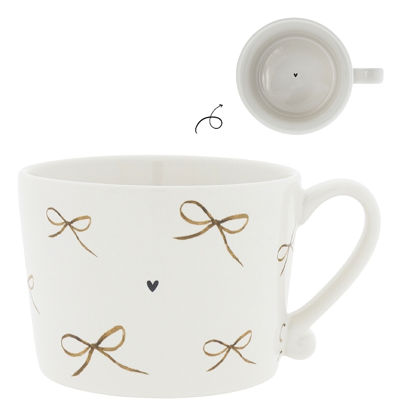 Úžasný, ručně malovaný hrneček s mašličkami a černým srdíčkem, s objemem 0,3 l, vhodný do myčky a mikrovlnné trouby od holandské firmy Bastion Collections.