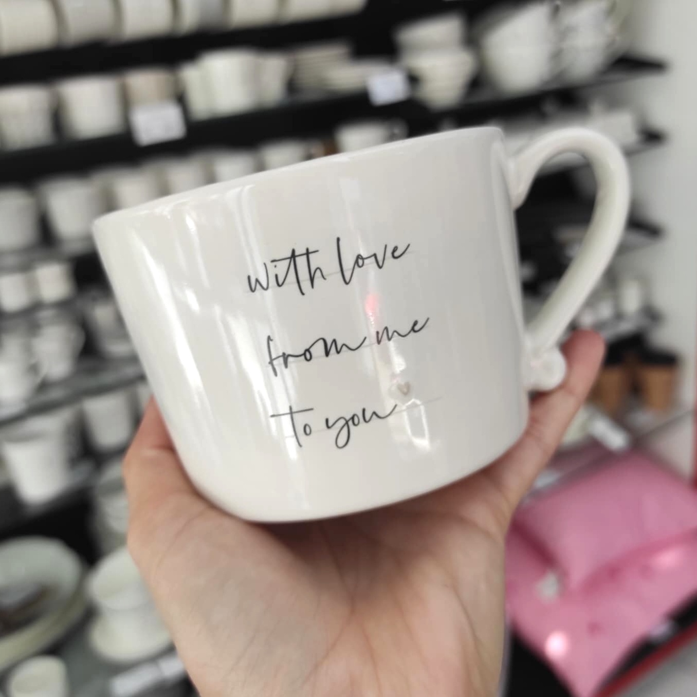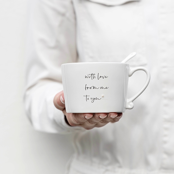 Úžasný, ručně malovaný hrneček s nádherným textem WITH LOVE FROM ME TO YOU, s objemem 0,3 l, vhodný do myčky a mikrovlnné trouby od holandské firmy Bastion Collections.