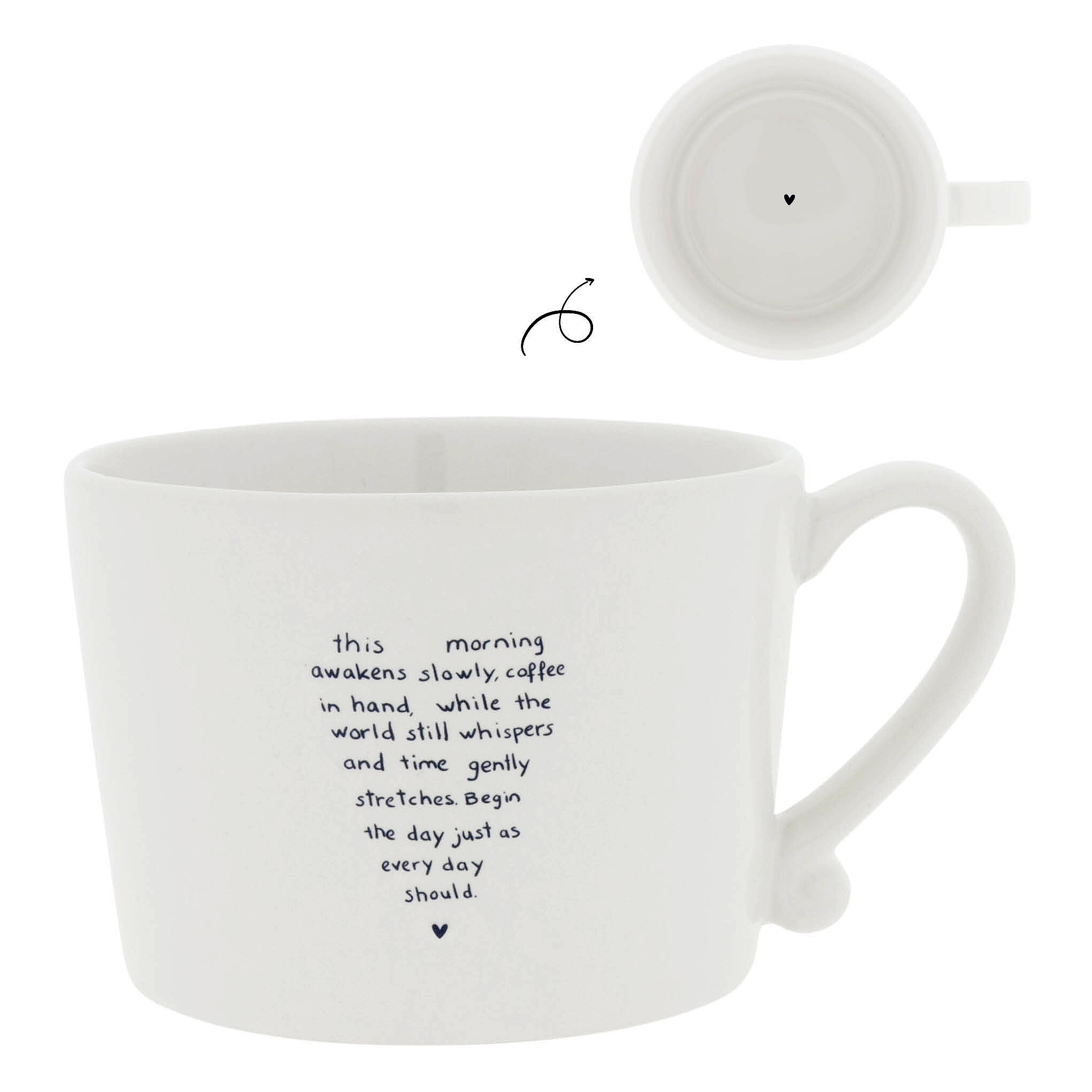 Úžasný, ručně malovaný hrneček s nádherným textem vytvarovaný do srdce (viz níže) v černém provedení a malým černým srdíčkem uvnitř hrnečku.
