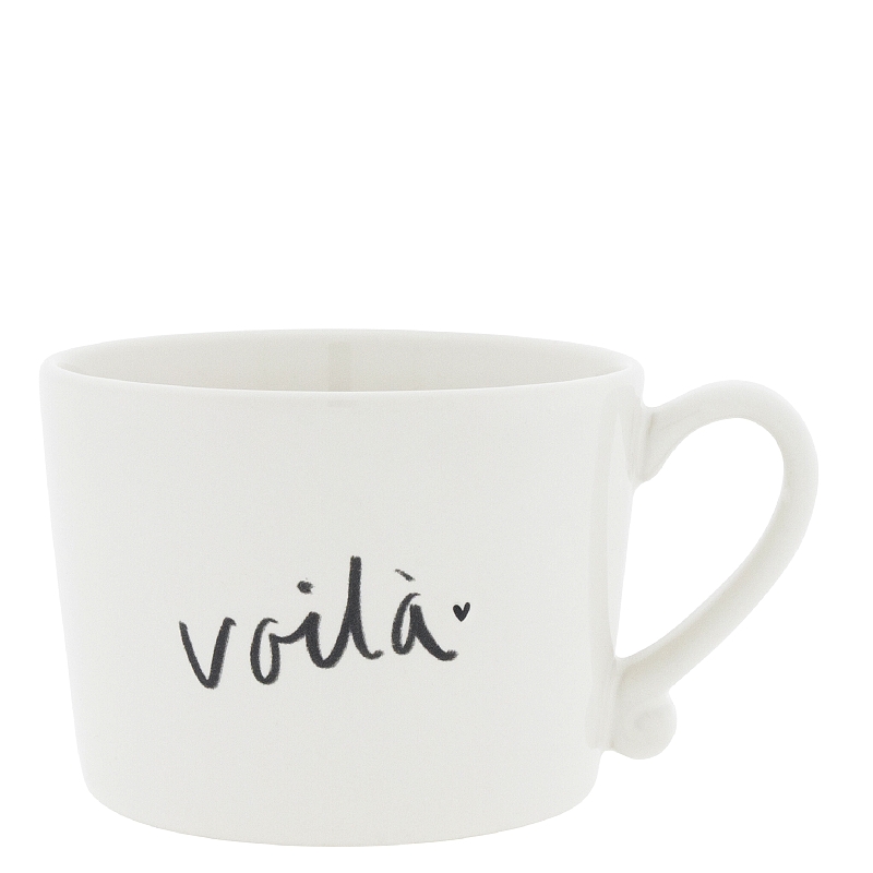 Úžasný, ručně malovaný hrneček s nádherným textem VOILA, s objemem 0,3 l, vhodný do myčky a mikrovlnné trouby od holandské firmy Bastion Collections.