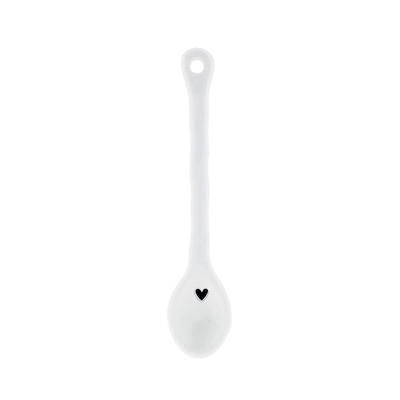 Rovný tvar keramické lžičky s černým srdíčkem.
