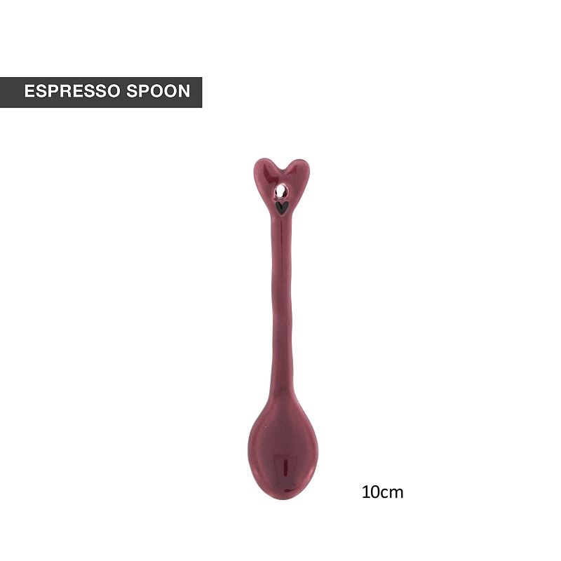 Plochý tvar vínové keramické lžičky v horní části úchop jako srdíčko s otvorem. Tato barva se skvěle hodí k růžové kolekci.