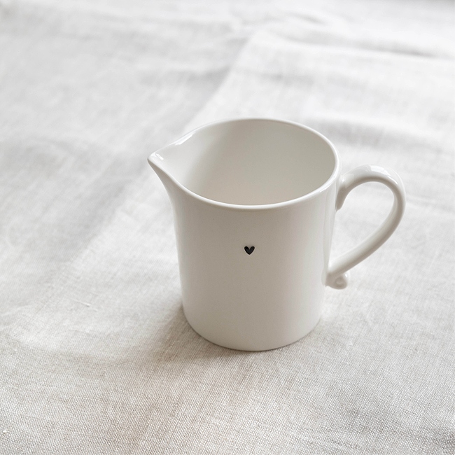 Malá keramická konvička s malým ručně malovaným černým srdíčkem od holandské firmy Bastion Collections. Rozšiřte svou sbírku o tuto úžasnou konvička na mléko, kterou můžete zároveň využít i na vodu nebo jako omáčník.