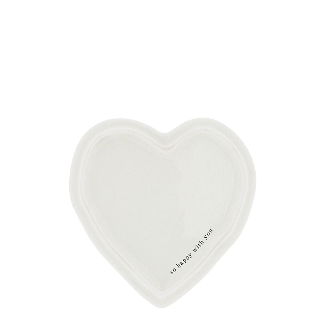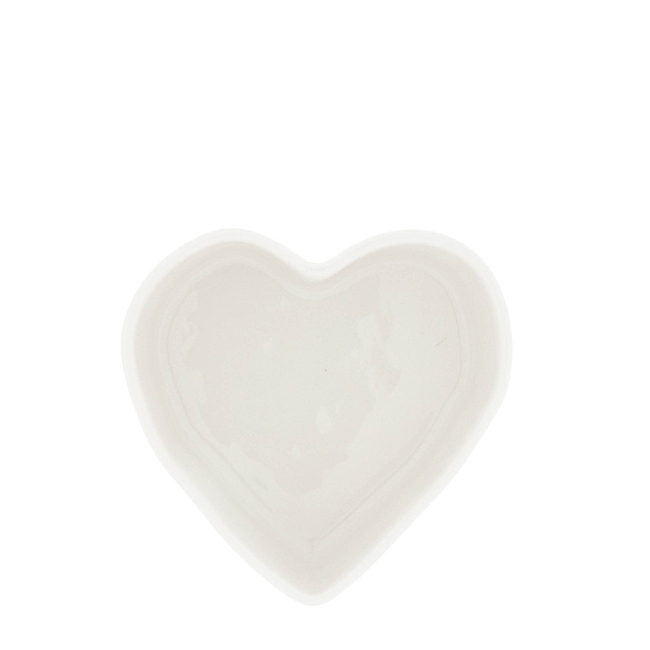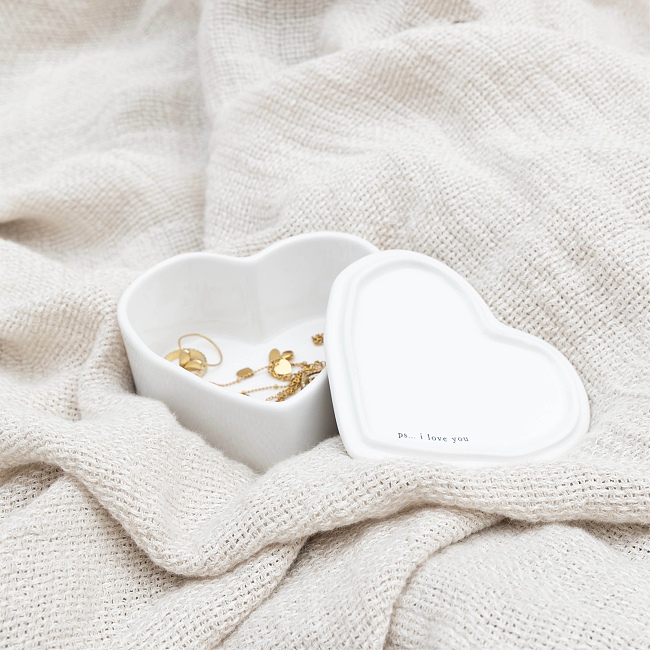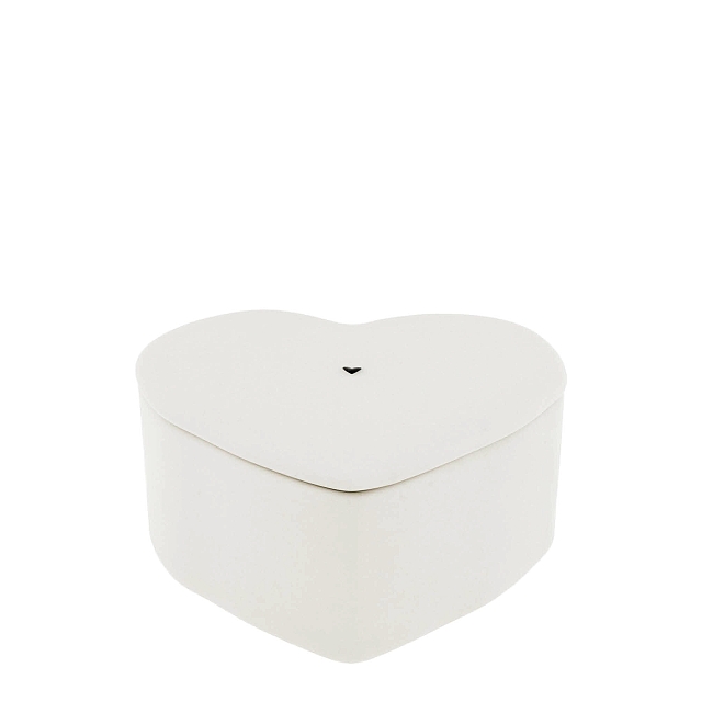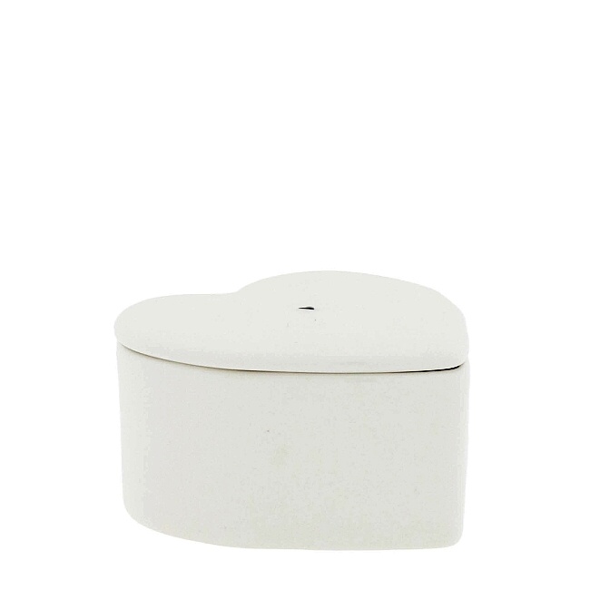 Keramická krabička ve tvaru srdíčka s malovaným černým srdíčkem, vhodná na šperky či jiné poklady.