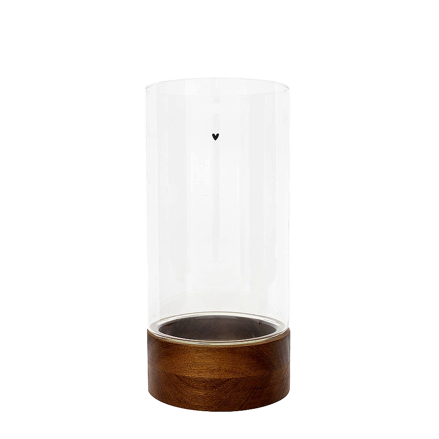Nádherná skleněná lucerna s dřevěným podstavcem.