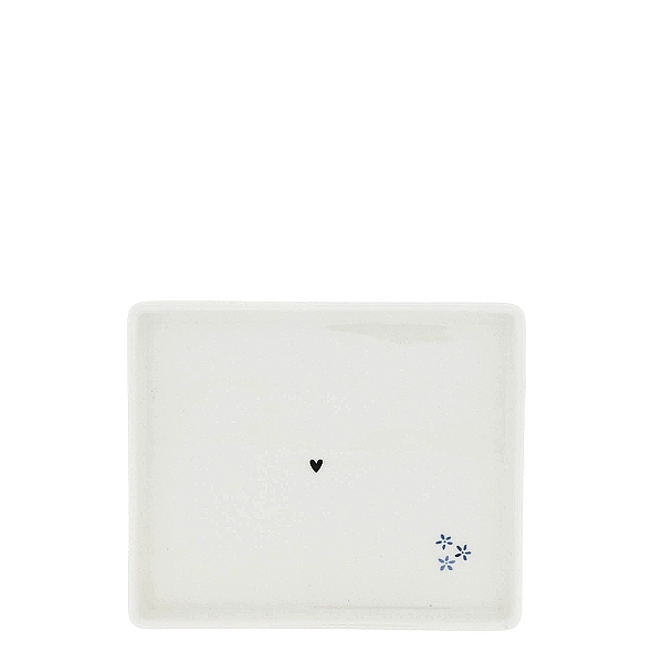 Ručně malovaná 2dílná, keramická miska na máslo s rukojetí ve tvaru srdce. Levandulová větvička a malé srdce v černé barvě na talířku uvnitř máslenky.