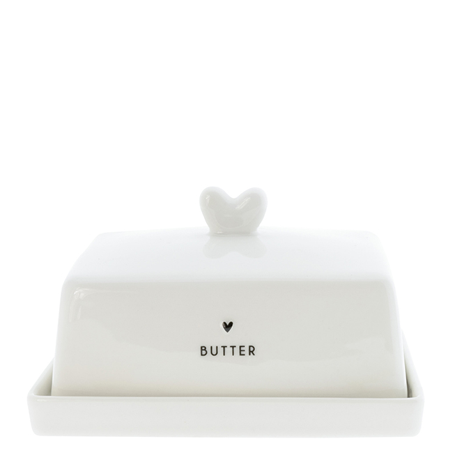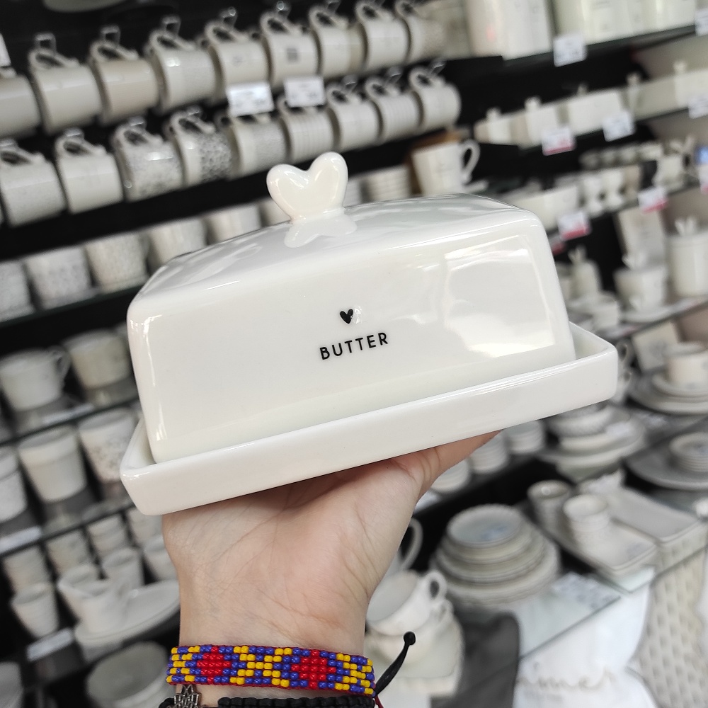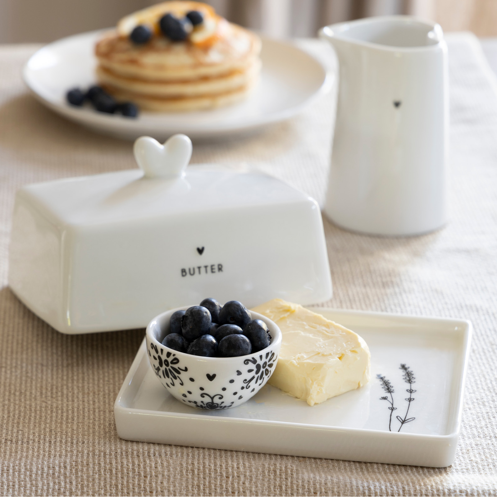 Ručně malovaná 2dílná, keramická miska na máslo s rukojetí ve tvaru srdce.