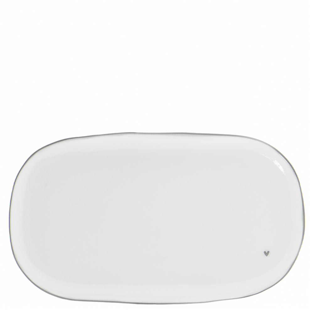 Bastion Collections OVAL PLATE white with heart in grey, 15x26cm