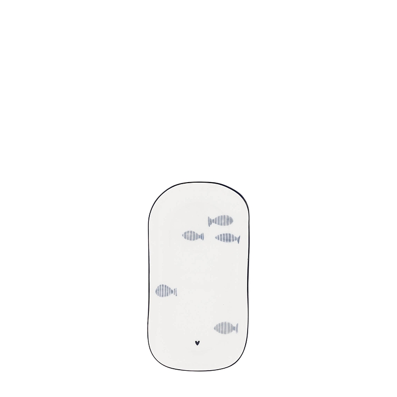 Bastion Collections Oválný talířek XS White/Blue Fish, 15,5x8,5x2cm