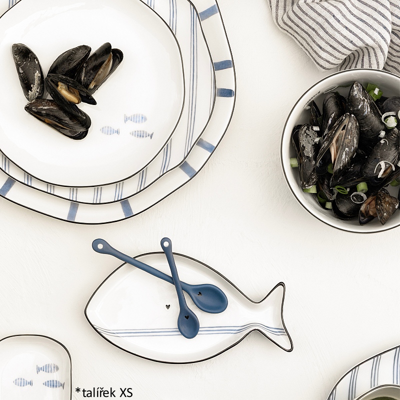 • detail Bastion Collections Oválný talířek XS White/Blue Fish, 15,5x8,5x2cm