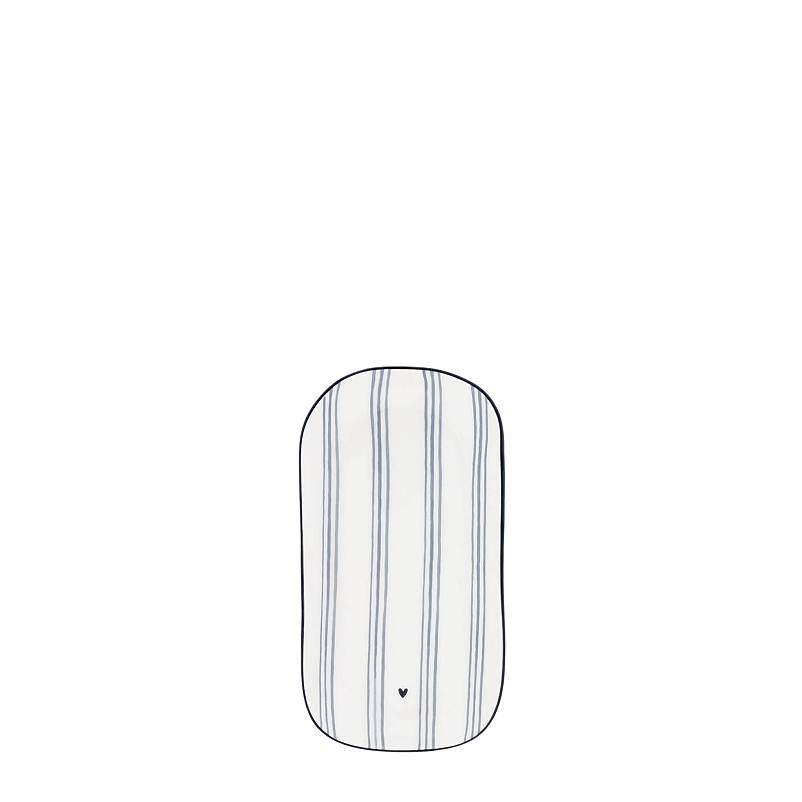 Bastion Collections Oválný talířek XS White/blue small stripes, 15,5x8,5x2cm