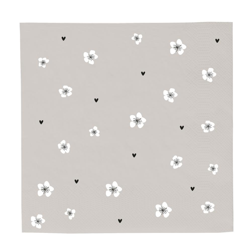 Velké papírové ubrousky s listy a nápisem "Bon appetit my love" v béžové/černé barvě.