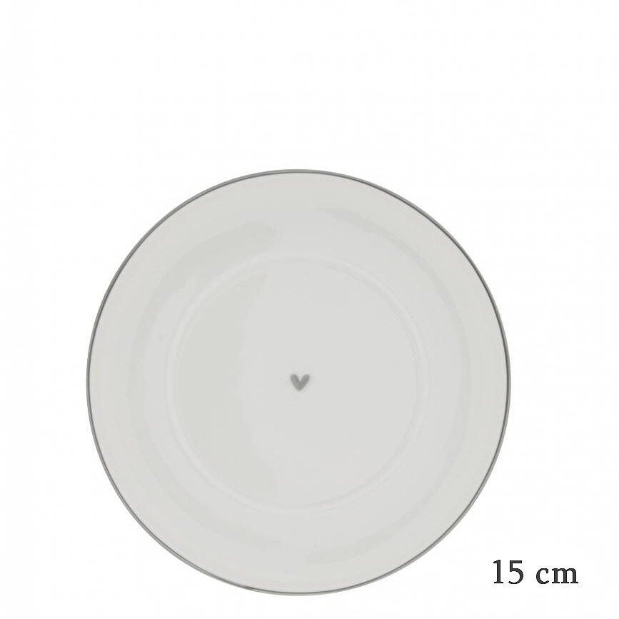 Jednoduchý ručně malovaný talířek s černým okrajem a malým srdíčkem od holandské firmy Bastion Collections.