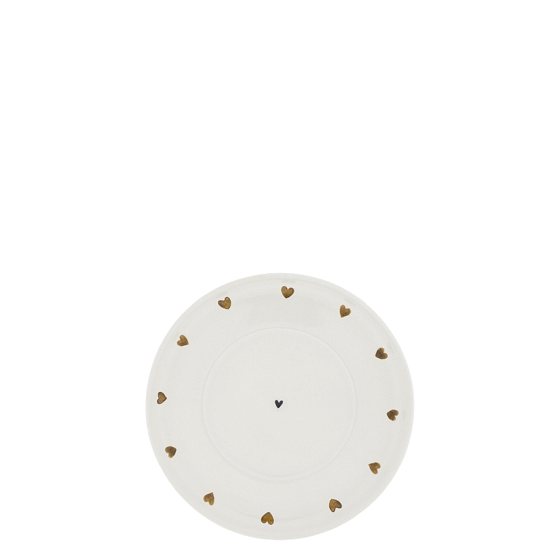 Jednoduchý ručně malovaný talířek s mírně zvlněným okrajem a malým srdíčkem od holandské firmy Bastion Collections. Vhodné pro střední hrnečky 175ml.