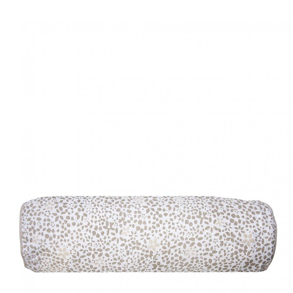 Oválný polštářek (povlak+vnitřek) v bílé barvě s potiskem "květinový vzor" v béžové barvě.