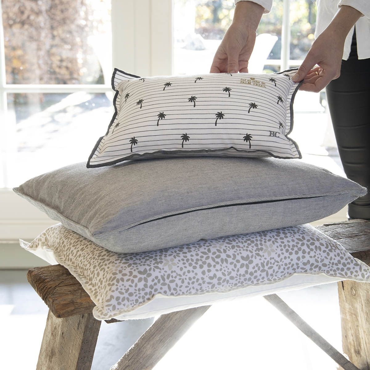 Bastion Collections Polštářek PALM TREES, 25x35cm black/white chambray