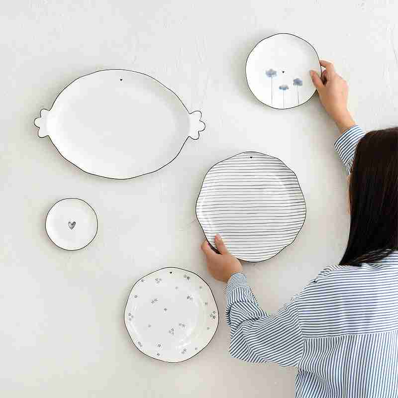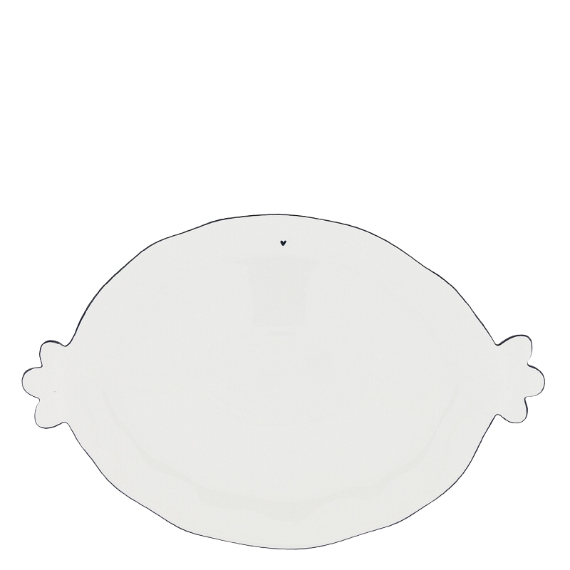 Velký, oválný, servírovací talíř o délce 37 cm s ručně malovaným okrajem a již tradičním černým srdíčkem.