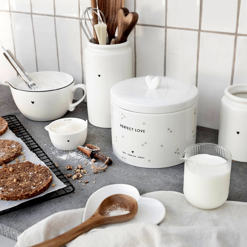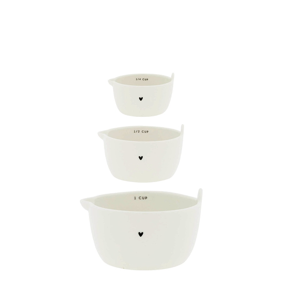 Sada nepostradatelných keramických odměrek tří velikostí s malým černým srdíčkem.