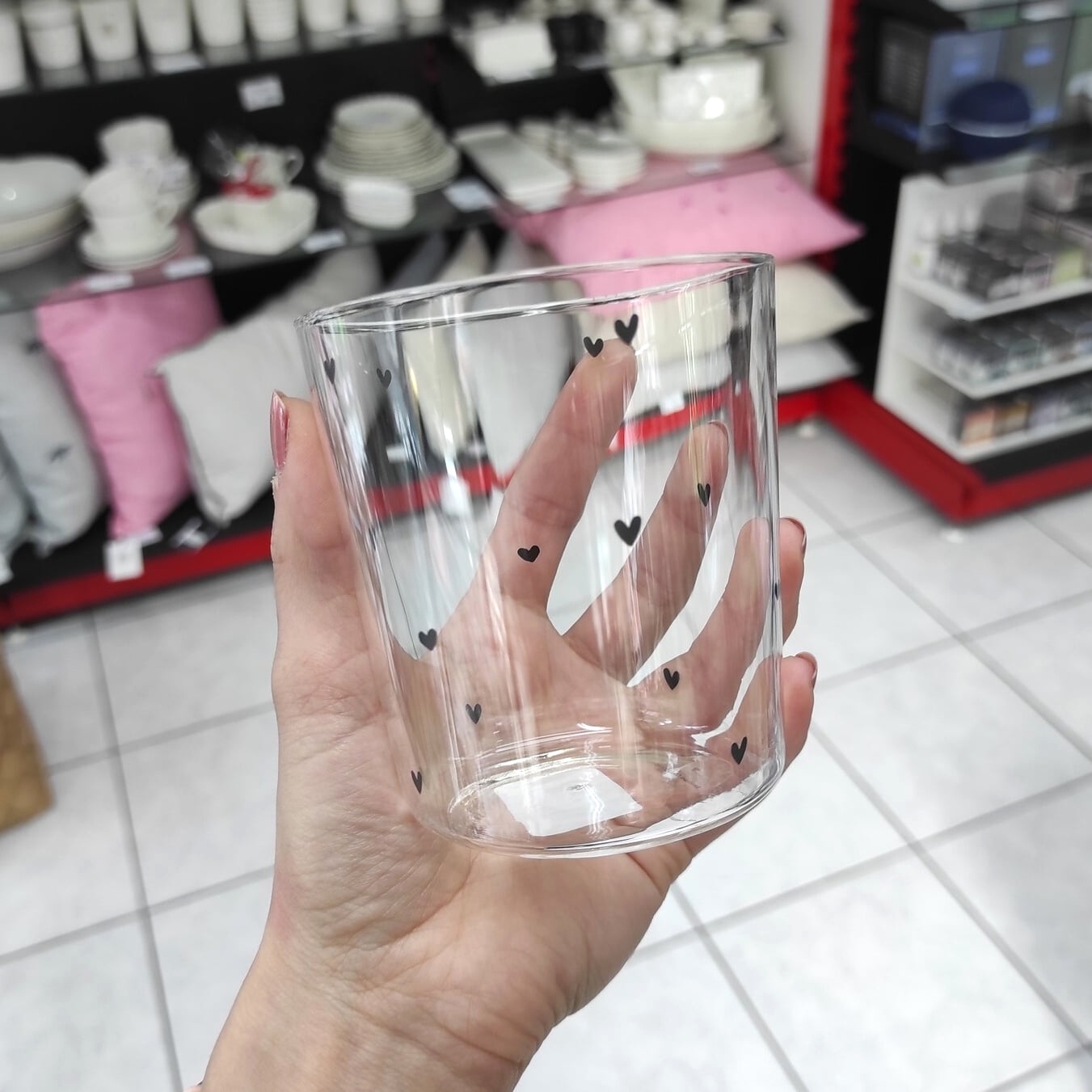 Sklenka se spoustou srdíček na domácí limonádu, kávu, vodu, víno, ale slušet bude i dezertům. To jak ji budete servírovat společně s vaší bastienskou sbírkou je čistě na Vás. Užívejte si rodinné pohody.
