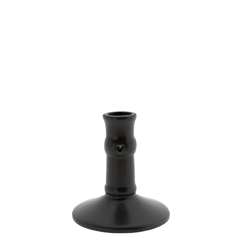 sladký svícen v matné černé barvě s malým černým srdcem jako detail
