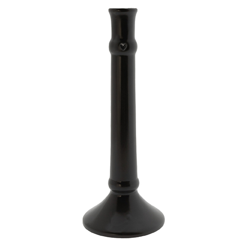 sladký svícen v matné černé barvě s malým černým srdcem jako detail