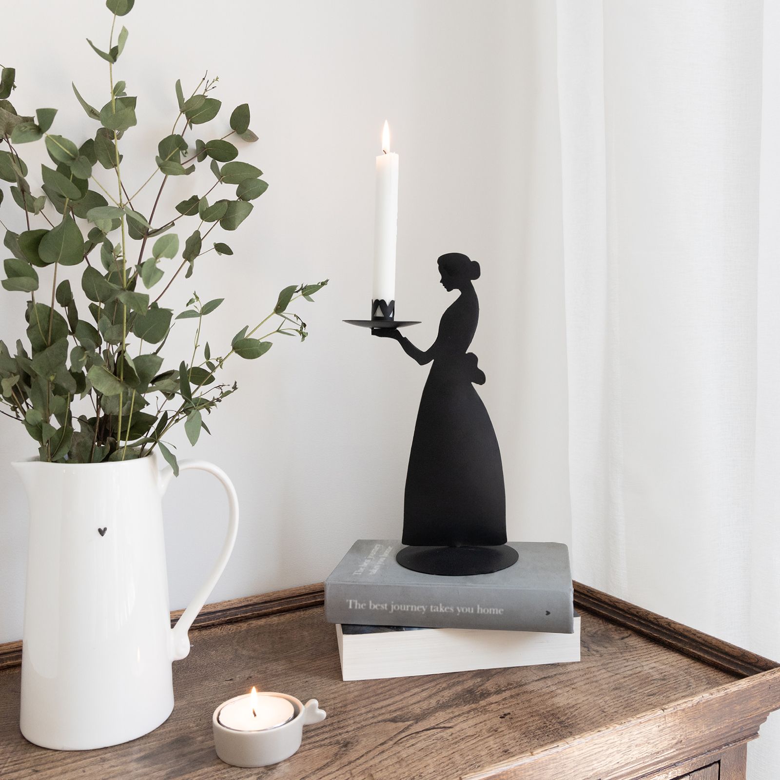Okouzlující svícen ve tvaru dámy je hezkou dekorací či funkčním svícnem s konickou svíčkou.