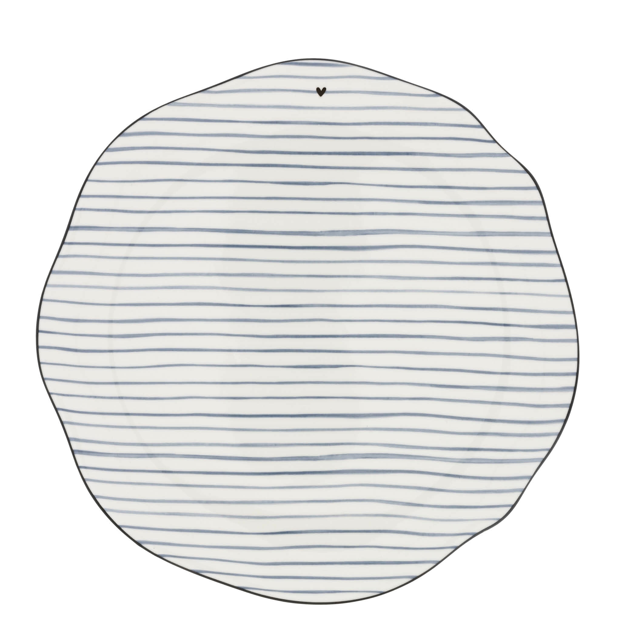 Nádherný velký talíř s černou linkou a malým roztomilým srdíčkem z kolekce IRIS BLUE, kombinujte s proužky, a jinými úžasnými talířky a miskami a vytvořte si tu svou jídelní soupravu, která Vás potěší... tak přesně to je Bastion Collections.