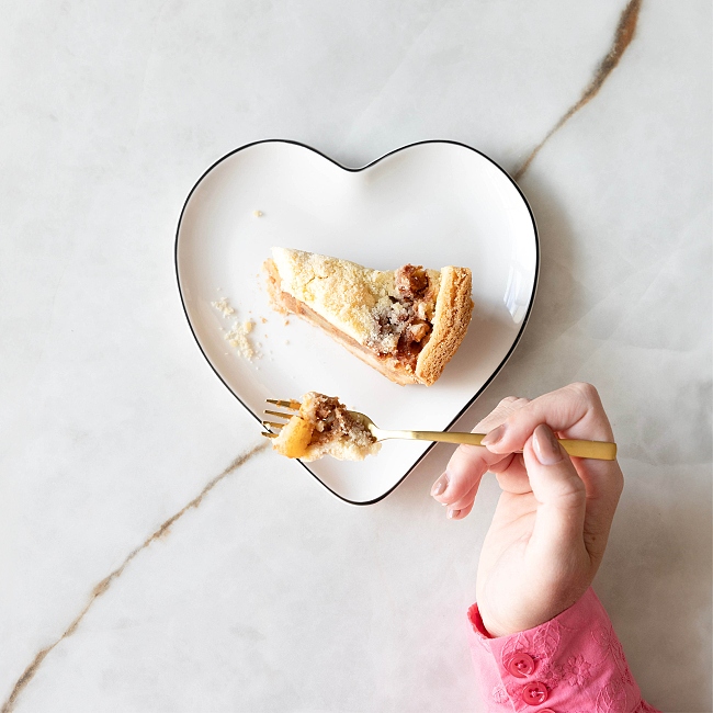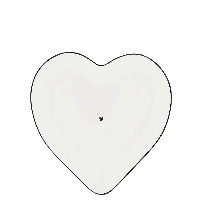 Nádherný srdíčkový talířek na zákusky a dobroty s ručně malovaným okrajem a malým černým srdíčkem, tak ikonickým pro tuto holandskou značku.