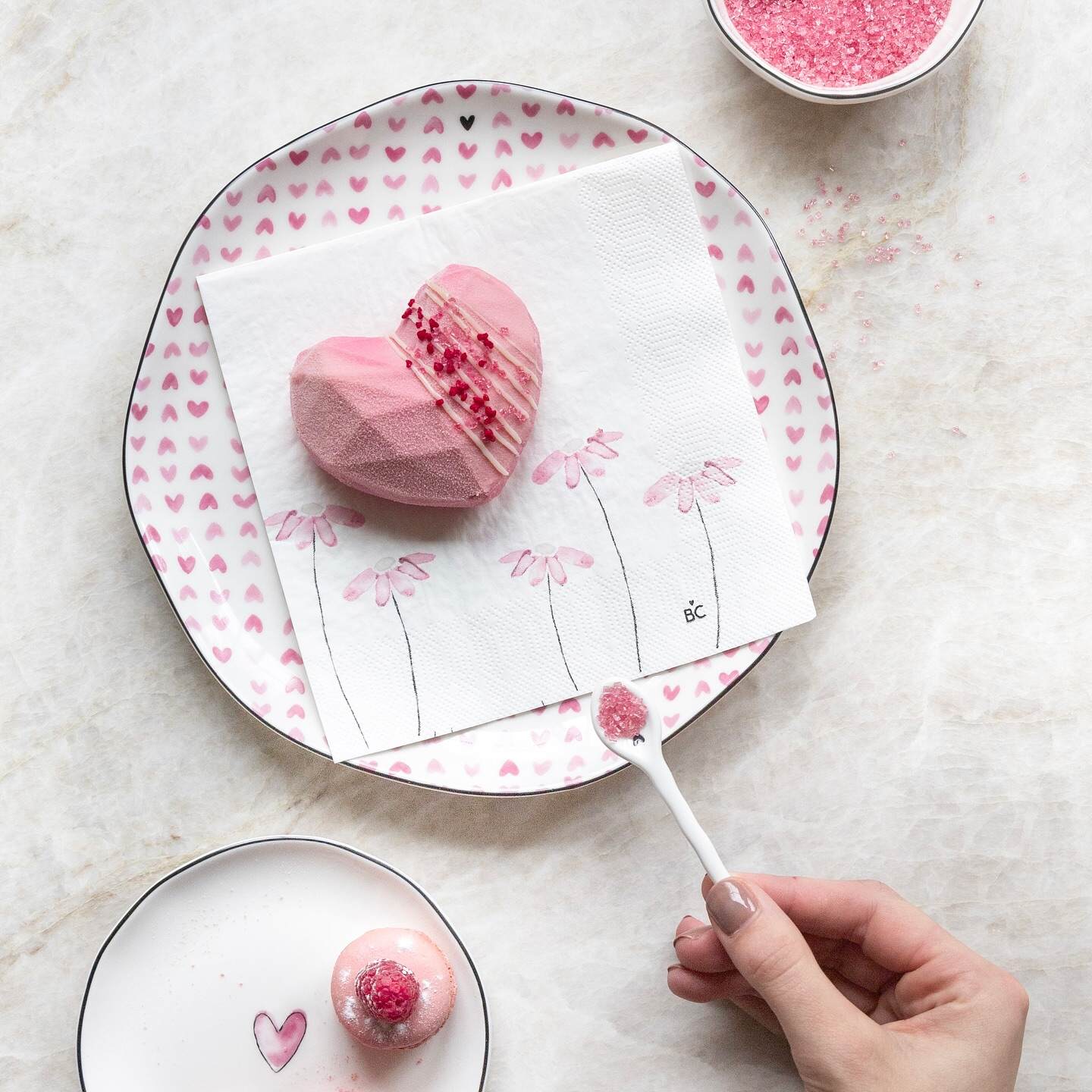 Romantický podšálek s růžovým srdíčkem a ručně malovanou linkou od holandské firmy Bastion Collections.