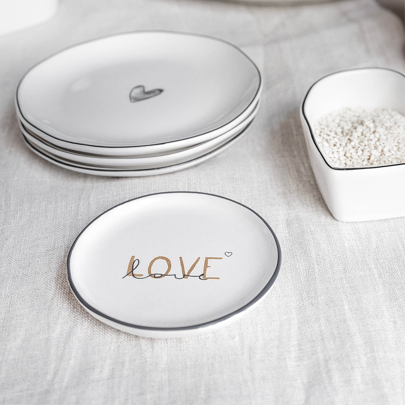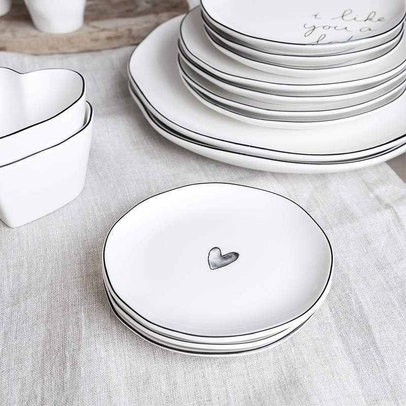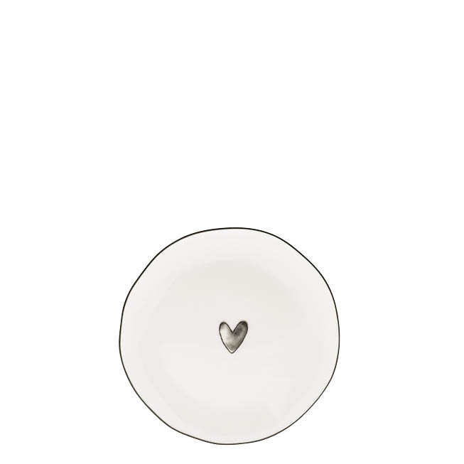 Romantický podšálek s černým srdíčkem a ručně malovanou linkou od holandské firmy Bastion Collections.