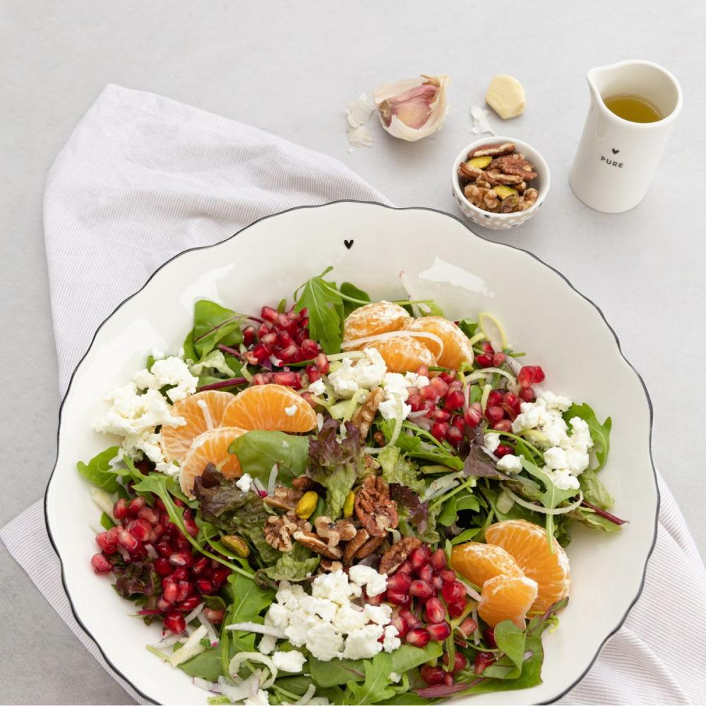 Salátová mísa s černými detaily a vroubkovaným okrajem